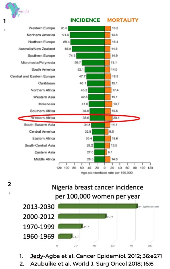 - The steadily increasing mortality rate in Nigeria (and her neighbors in sub-Saharan Africa) is due to increased incidence1, lack of early detection programs, and therefore late-stage presentation of the disease, with less likelihood for cure.
